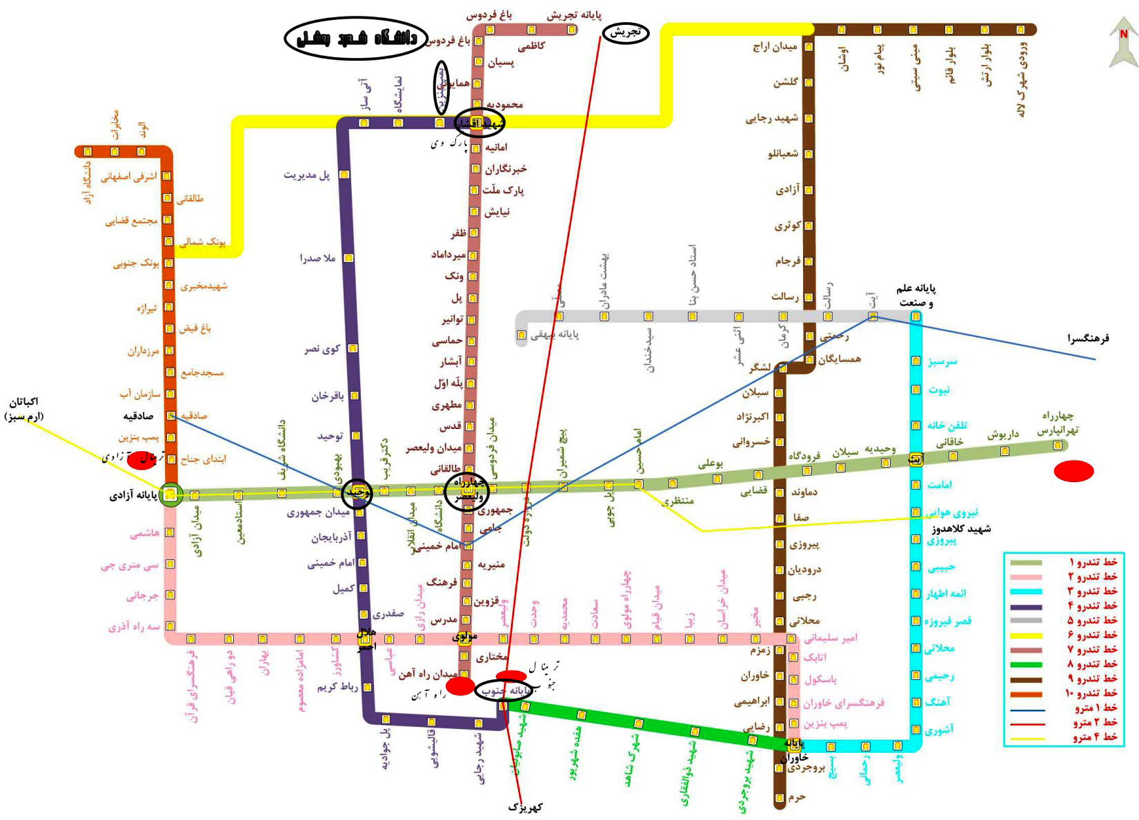 - 2- تاکسی خطی تجریش، دانشگاه، ولنجک: ایستگاه اصلی، پایانه مسافری میدان تجریش